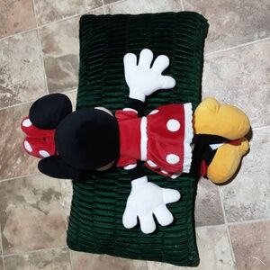 Adorable Minnie Mouse plush. Features red dress with white polka dots. Yellow shoes and big white gloves. Perfect for cuddling.