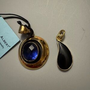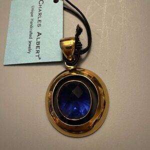 New Charles Albert alchamia blue lab created stone pendant + free black pendant