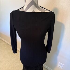 Chic black dress with a high slit.Features a stylish slit. Perfect for evening wear. Midi length. Slit does have a knit detail as well as the 3/4 sleeves. Slit does go high. Ribbed material. Great condition.