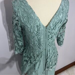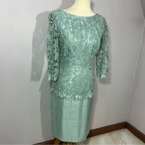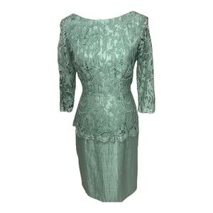Adrianna Papell Peplum Dress Green Floral Lace Formal Wedding Guest Mermaid Sz 8