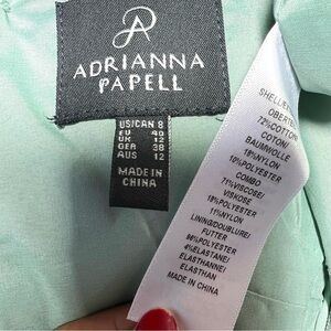 For fans of Mint Green Hue, Peplum Hem, Fitted Bodice, Flared Skirt, Knee-Length, Formal Occasions, Wedding Guest, Bridal Shower, Baby Shower, Garden Party, Tea Party, Cocktail Events, Formal Gatherings, Special Occasions, Adrianna Papell Signature Style, Similar Brands: Kate Spade, Lilly Pulitzer, Tory Burch, BHLDN, Occasions: Weddings, Formal Events, Spring/Summer Parties, Outdoor Gatherings, Evening Receptions.