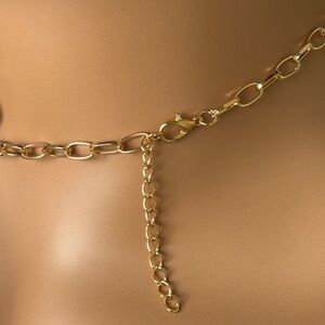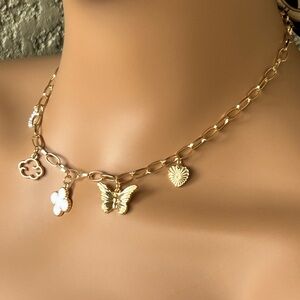 Elegant gold chain necklace featuring white & gold charms. Perfect for adding a touch of sophistication to any outfit.