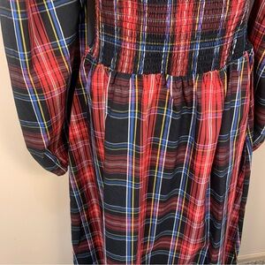 Chic plaid smocked tiered midi dress by Draper James. Cute puff sleeve detail. Like new…