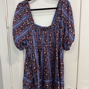 Elevate your style with this charming floral blue top. Perfect for any occasion, this top combines comfort and elegance. Puff sleeves. Super fun to wear.