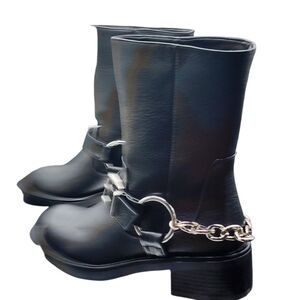 Billini Oskar Chain Moto Boots Black Size 7 NWT | Quiet Luxury Edge