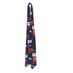 NFL Team Apparel Men's Orange/Blue Polyester Denver Broncos Tie Handmade Logo Design. Features official team colors and logo. Made from 100% polyester. Lightweight and professionally handmade. Dry clean only for care. Vibrant design for fan enthusiasm.