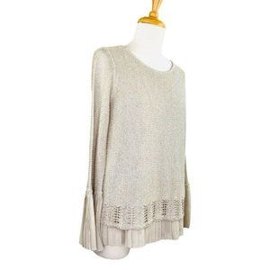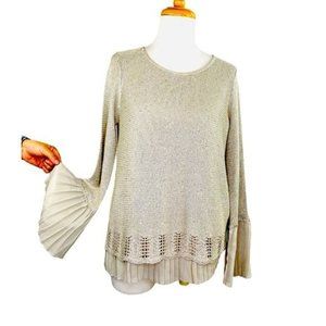 Anthropologie Sioni Studio Sequined Sweater Layered Bell Pleated Sleeves Size S