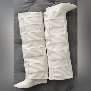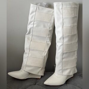 Wedge Boot (Women) Step out in style with these elegant white knee-high boots. Perfect for any occasion, they offer both comfort and sophistication.