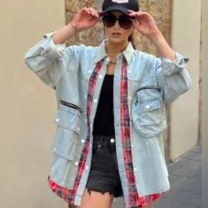 Women's Denim and Plaid Jacket
