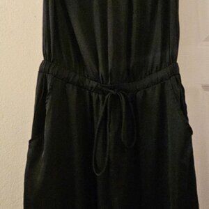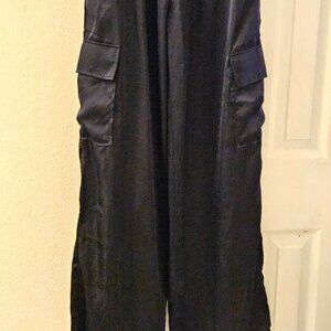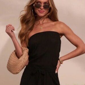 Vici Black Strapless boho wide leg pockets jumpsuit Romper Silky L