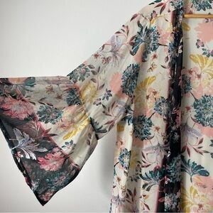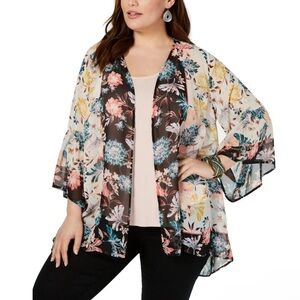 Style & Co Womens Plus 1X Multicolor Floral 3/4 Sleeve Sheer Layering Kimono cardigan