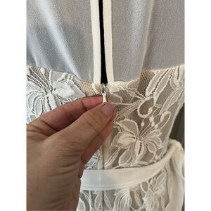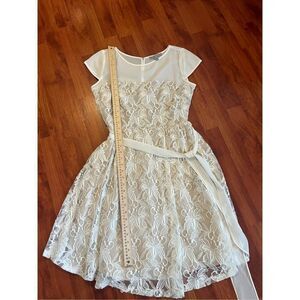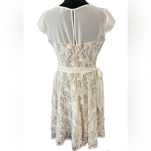 Off white with tan lined dress is in excellent condition. Worn Once. Beautiful dress comes from a clean and smoke free home. Question and offers are welcome.