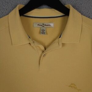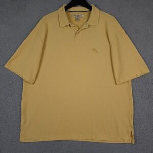 Vintage Tommy Bahama Polo Shirt Mens XL Yellow Pima Cotton Blend Pique Knit
