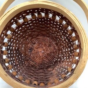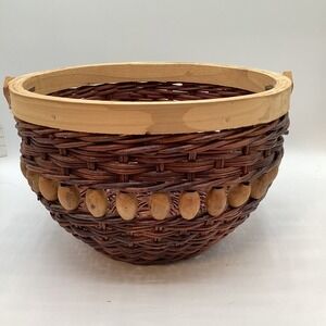 Rustic Wicker Basket Wood Handle Decorative Beads 6"H
