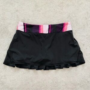Sleek black Lululemon pacesetter skirt with bold pink waistband. Ideal for active and casual wear. It’s in very good condition and a women’s size 8. Comes from a smoke free home