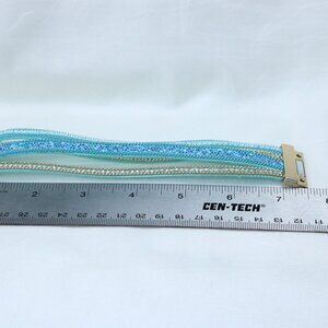 Blue Rhinestone Multi-Strand Wrap Bracelet | Gold Tone Accents