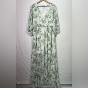 Baltic Born XXL Sage Green Floral Maxi Dress Kimono Sleeve Wrap Style Flowy