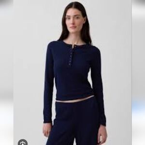 Women's GapBody Basic Ribbed Navy Long Sleeve Ribbed Henley Size Large