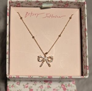 Betsy Johnson Petite Sparkle Bow Dangle Neklace , Brand New in Box
