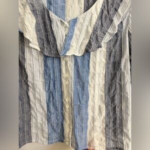 Christy Dawn Striped Seersucker Blouse Blue Small