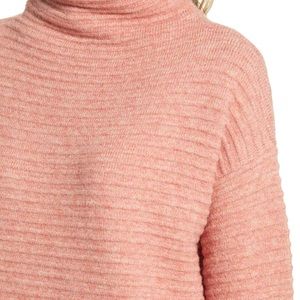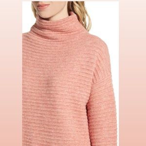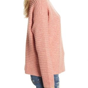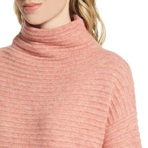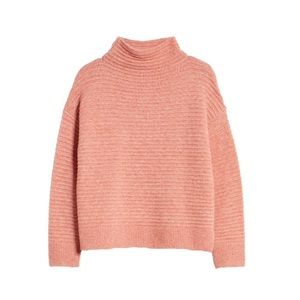 Madewell pink turtleneck sweater Belmont Mock Neck knit textured rib stripe XS