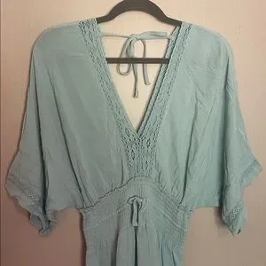 Lovestitch small blue lace crochet smocked dress rayon v neck tie back