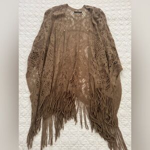 Do Everything in Love Tan BOHO Western Brown Fringe Kimono Cardigan One Size