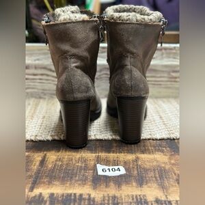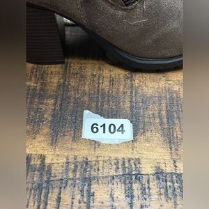 Brown boots 7-1/2 3” wide heel faux leather combat boot.