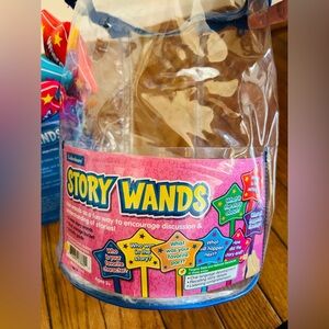 Engage your child's imagination with these vibrant Story Wands. Perfect for interactive storytelling, each wand features a fun question to spark creativity. Includes colors like red, yellow, and orange.