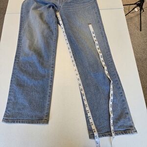 Zip fly with button closure 5-pocket styling Light whiskering and fading detail