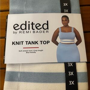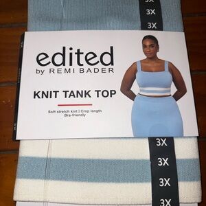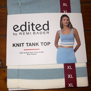 Experience comfort and style with the Edited by Remi Bader Knit Tank Top. This blue tank top features a soft stretch knit and a flattering crop length, perfect for any casual outing.