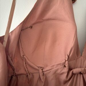 Style: Halter neckline, deep V, ruched bodice, tiered skirt