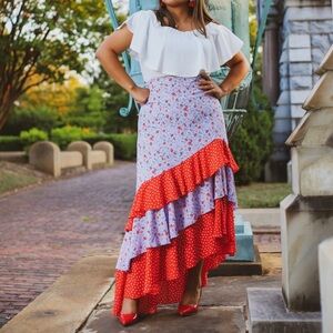 NWT New York & Co Womens Mixed-Print Tiered Ruffled Asymmetrical Skirt Sz Large