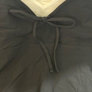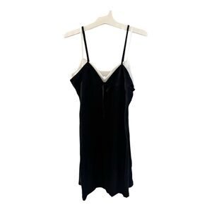 Stylish mini dress with a sleek black design and white straps. Ideal for casual outings.
