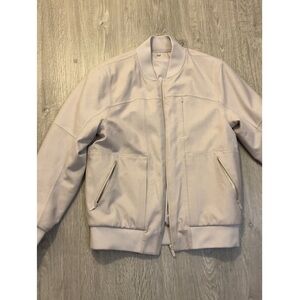 Stylish bomber jacket. Soft fabric. Front zipper closure. Two side pockets.
