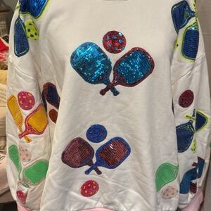 Queen of Sparkles pickleball Colorful Sequin Sweatshirt xl