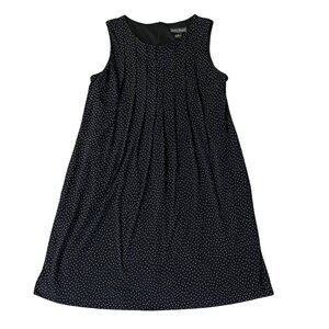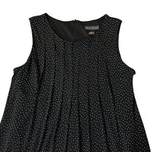 jessica howard dress, womens size 14 dress, black polka dot dress, sleeveless dress, lined dress, back zip dress, pleated front dress, pintuck dress, career dress, cocktail dress, used womens clothing
