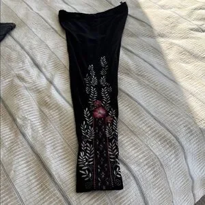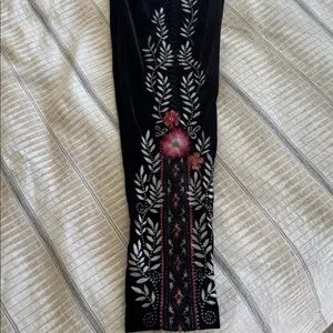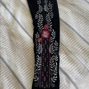 Johnny Was Stretch Velvet Embroidered Black Pants Size S