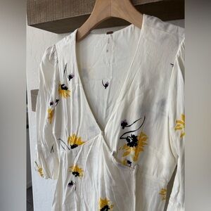 Free People|Time on my Side Floral Wrap Mini Dress in White and Yellow••Feminine
