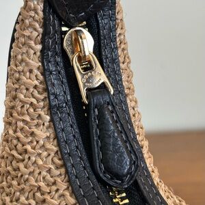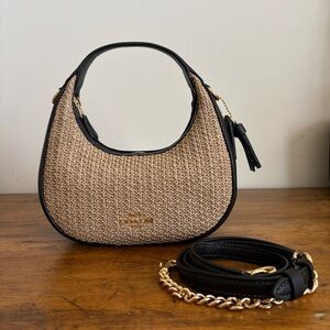 Coach Carmen mini crossbody in raffia and black leather