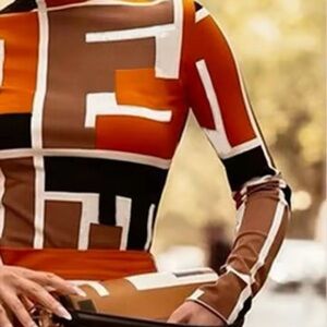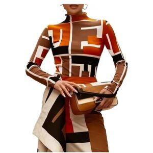 Bonboho Women's Clothes 2024 Fall New Printed Skinny T-shirt for Urban Female High Neck Long Sleeves Pullovers Casual Shirt Tops 6