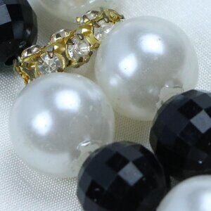 Vintage Black & White Beaded Statement Necklace with Pearl Accents