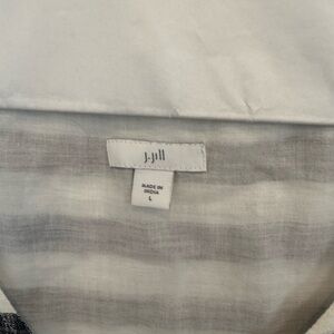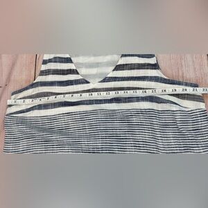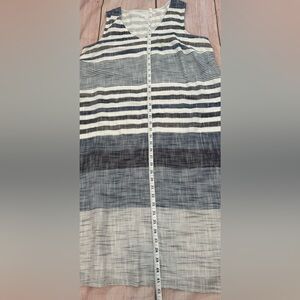 J Jill Sleeveless Dress Striped White Blue Black Pockets 100% Cotton Size Large