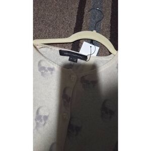 Skull Cashmere Off White Cashmere Cardigan with Pockets sz Small. Thinner material. Cashmere. Grey Skulls All over it. Has tagged attached. Sold as is