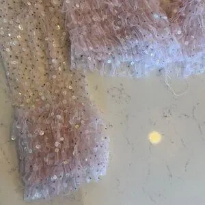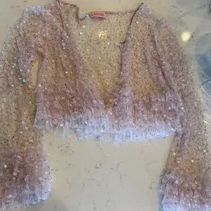 NWOT Dyspnea AUS pink hand beaded ruffle tulle cardigan