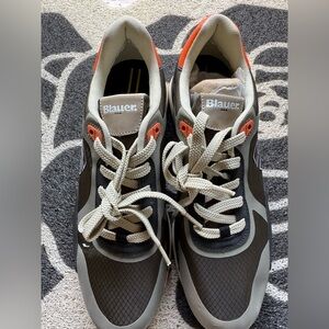 Stylish Blauer sneakers with a gray and orange design. Ideal for casual wear.