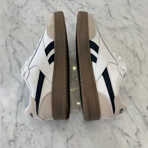 Classic Reebok sneakers with a white and beige design. Features a comfortable fit and stylish look. Ideal for casual outings.