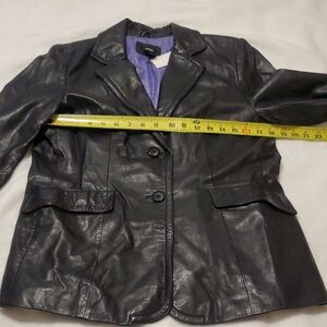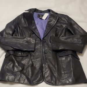 Mossimo Black Real Leather Jacket with Purple Lining