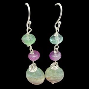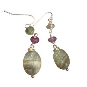 Seafoam Prehnite Pink Green Fluorite Dangle Earrings 925 Sterling Silver