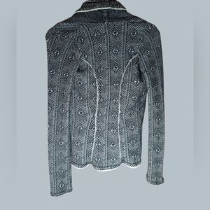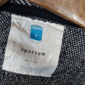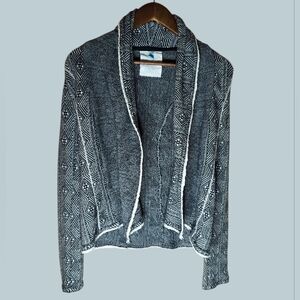 Anthropologie Sparrow Black and White Geometric Print Open Cardigan Lace Trim